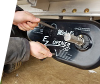 Being the ” EZ Opener 210″ is mounted above the bottom of your chute, it will not interfere with the use of swing augers and is protected from rocks flying off tractor tires. The weatherproof enclosure is made from “LEXAN EXL”, a polycarbonate that offers superior impact and low temperature ductility .The “EZ Opener 210″ can be mounted on either the driver side or passenger side of the trailer. Because of the remote signal strength it can be opened or closed from the top of your bin or your air-seeder.